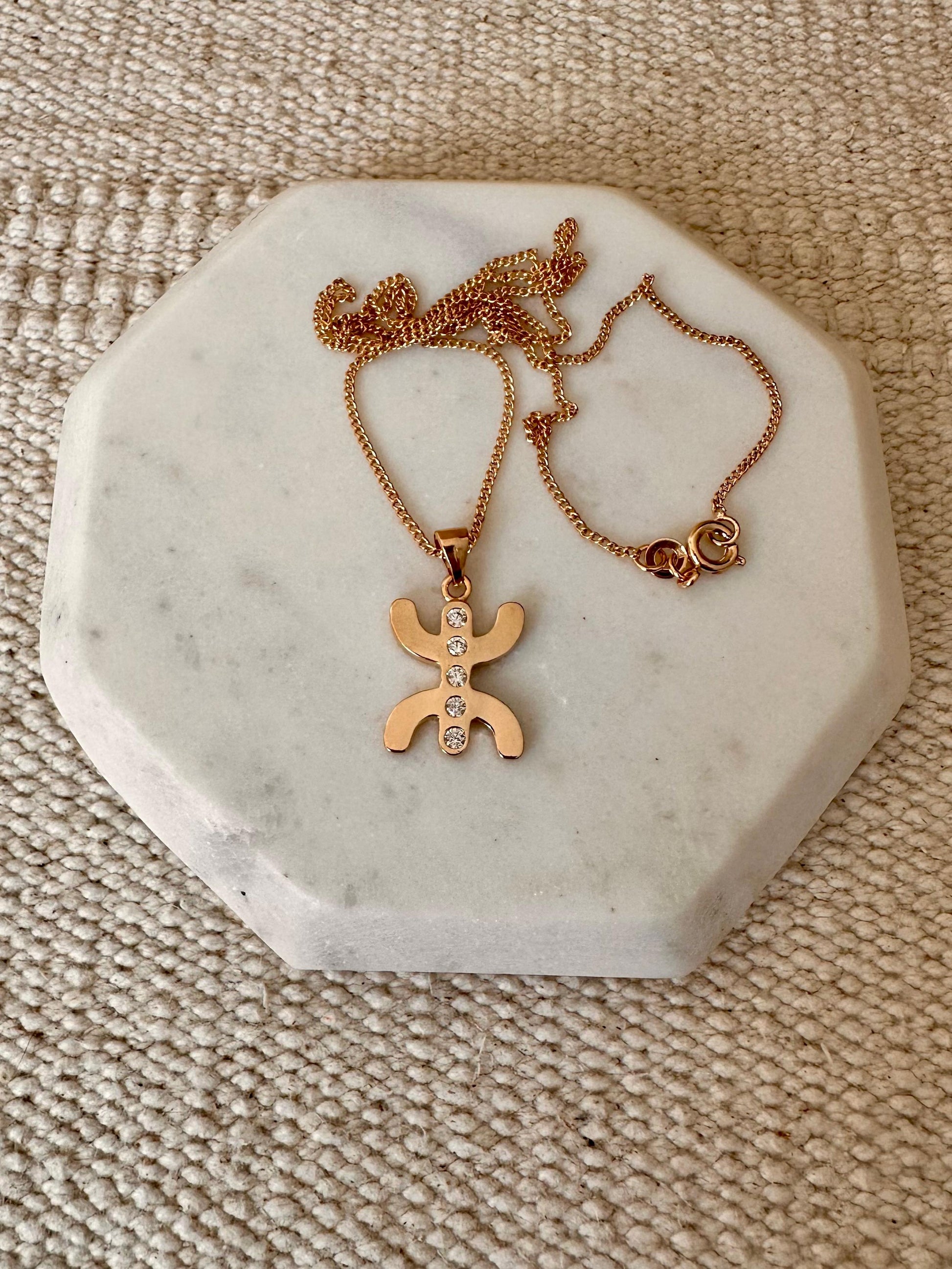 Celebrate Amazigh identity with this gold-plated necklace featuring the iconic Yaz symbol (ⵣ). A powerful emblem of freedom, resilience, and cultural pride, this pendant is encrusted with sparkling stones and suspended from a sleek gold-tone chain. A modern and elegant tribute to North African heritage.